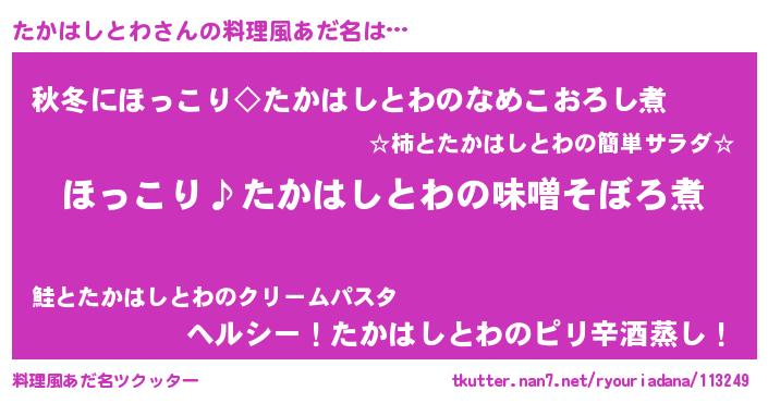 | 肩書あだ名 | 『たかはしとわ御曹司』 |