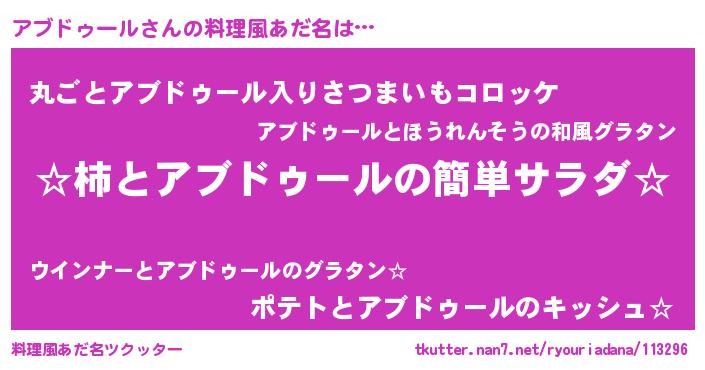| 意味不明あだ名 | 『住所不定無職アブドゥール(12歳)』 |