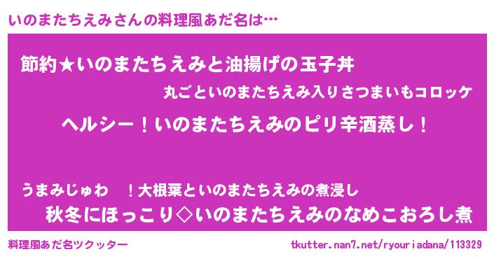 | 男性向けラノベタイトル風あだ名 | 『Re:いのまたちえみから始める異世界生活』 |
