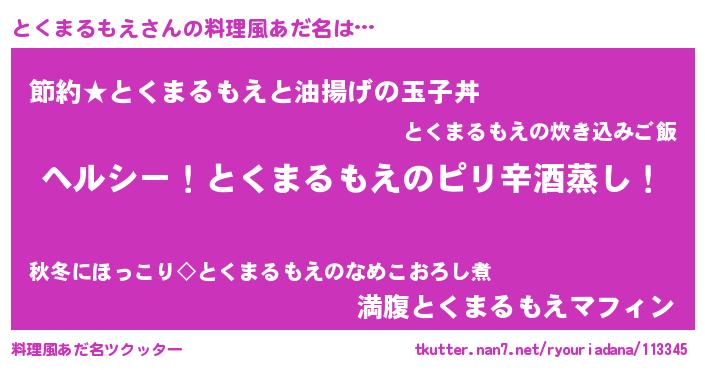 | ヘコむあだ名 | 『とくにゅー』『とくまるもえ(笑)』 |