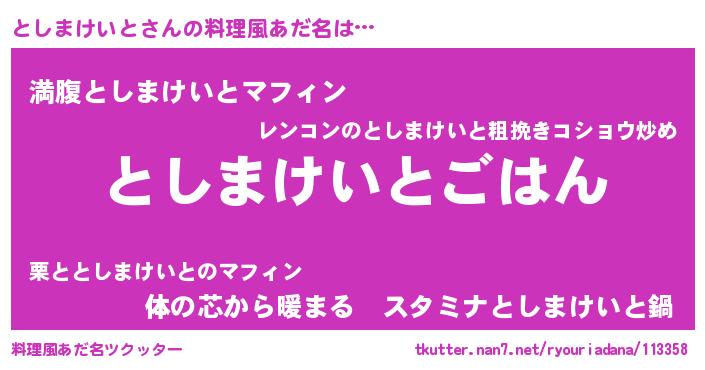 | 可愛いあだ名 | 『としぷりん』『としまけいとママ』 |