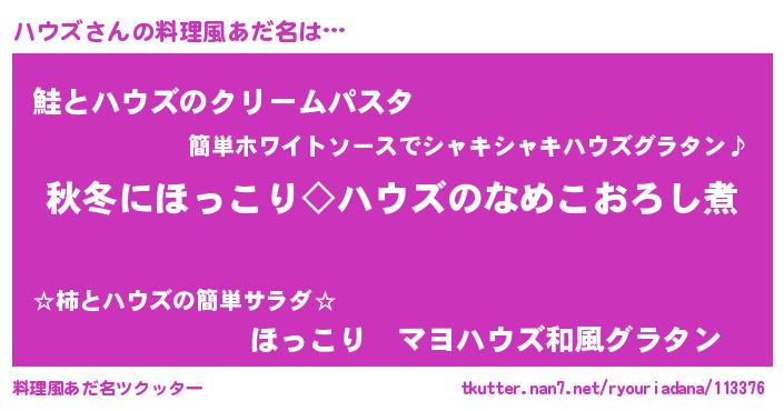 | ヘコむあだ名 | 『ハウっちょ』『なまこ酢』 |