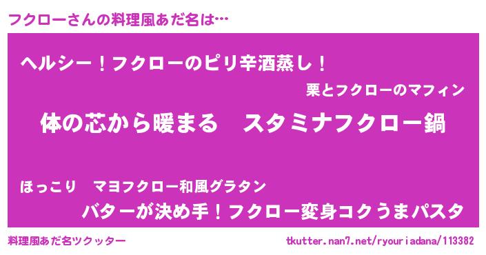 | 男性向けラノベタイトル風あだ名 | 『やはりフクローの青春ラブコメはまちがっている 』 |