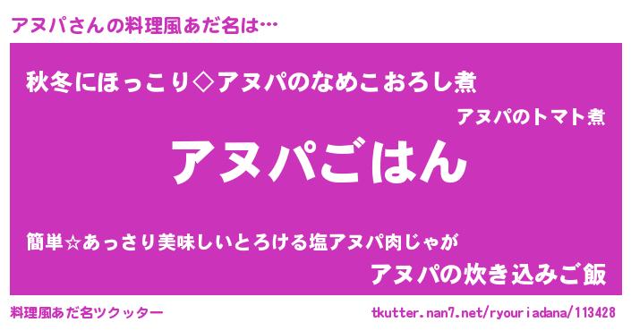 | 意味不明あだ名 | 『めかぶ科アヌパ属』『永久保存アヌパ』 |