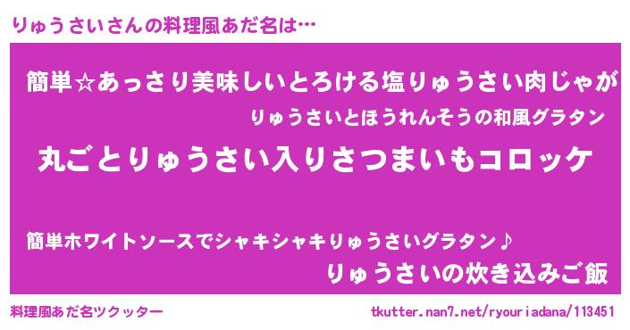 | ヘコむあだ名 | 『りゅうさい(笑)』『りゅを』 |