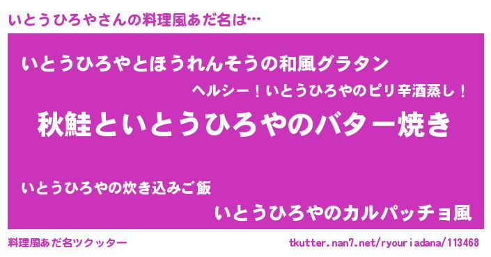 | 胡散臭い通販商品みたいなあだ名 | 『来世でも幸せになれる健康食品…その名も「いとうひろや」』 |