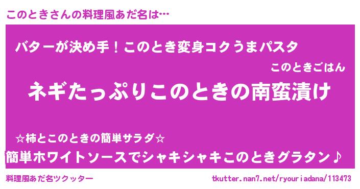 | ヒーロー風カッコイイあだ名 | 『スーパーコノトキ』『愛の使者このとき』 |