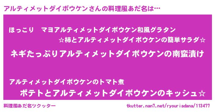 | 胡散臭い通販商品みたいなあだ名 | 『億万長者になれる水晶球…その名も「アルティメットダイボウケン」』 |