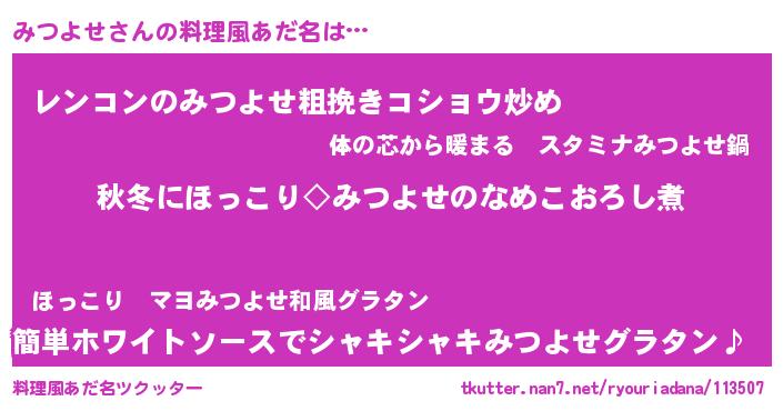 | ヘコむあだ名 | 『みつっ子』『豆乳』『みつふぇ~』 |