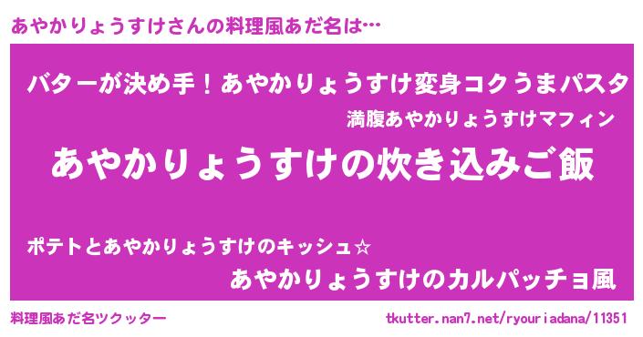 | ヘコむあだ名 | 『あやかりょうすけ(震え声)』『あや太郎』 |