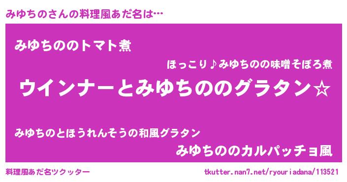 | ポケモン風あだ名 | 『ミユチダネ』『ミックウザ』 |