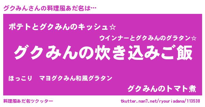 | ヒーロー風カッコイイあだ名 | 『幻影騎士グク』『愛の使者グクみん』 |
