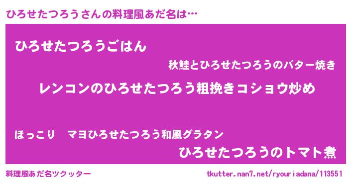 | ヘコむあだ名 | 『ひろせたつろう(苦笑)』『牛乳』 |