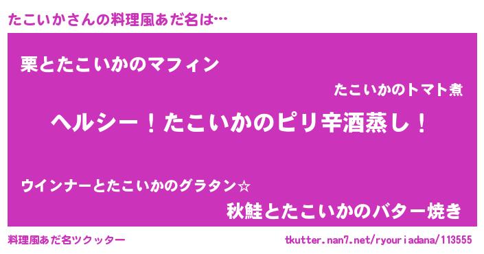 | 意味不明あだ名 | 『自称たこいか』『永久保存たこいか』 |