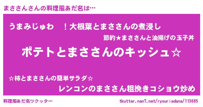 | 女子向けラノベタイトル風あだ名 | 『まささんの卵を拾いまして』 |
