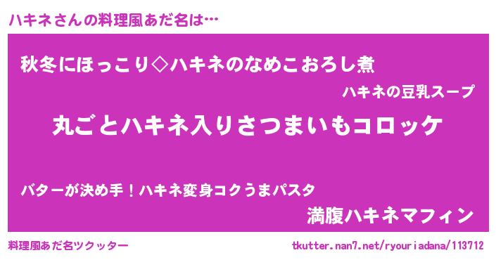 | 意味不明あだ名 | 『住所不定無職ハキネ(6歳)』 |