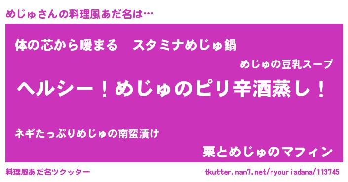 | 男性向けラノベタイトル風あだ名 | 『Re:めじゅから始める異世界生活』 |