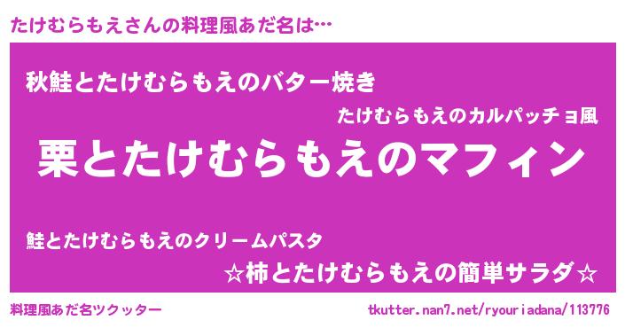 | 意味不明あだ名 | 『永久保存たけむらもえ』 |