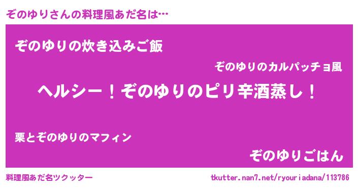 | 男性向けラノベタイトル風あだ名 | 『Re:ぞのゆりから始める異世界生活』 |