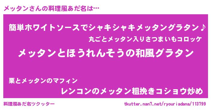| ヘコむあだ名 | 『メッっぺ』『レバニラ』『メッもー』 |