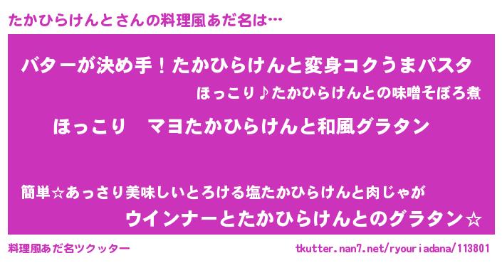 | 意味不明あだ名 | 『住所不定無職たかひらけんと(91歳)』 |