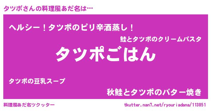 | 意味不明あだ名 | 『たけのこ科タツポ属』『自称タツポ』 |