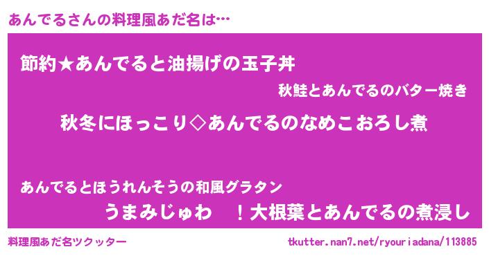 | 意味不明あだ名 | 『ペロリンあんでる』『永久保存あんでる』 |
