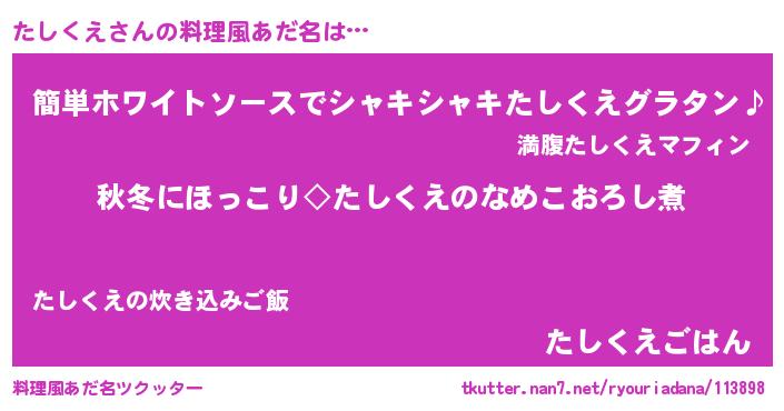 | ポケモン風あだ名 | 『タシゴンZ』『ヒタシクエ』 |