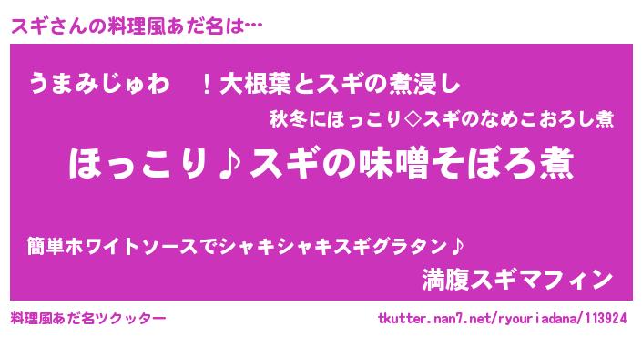 | 2回繰り返すあだ名 | 『スギスギ』『ススギギ』『ぬめぬめ』 |