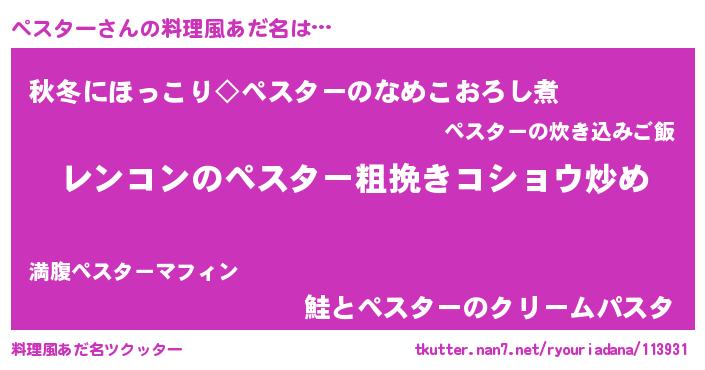 | 女子向けラノベタイトル風あだ名 | 『ペスターなんてお断りですっ。』 |
