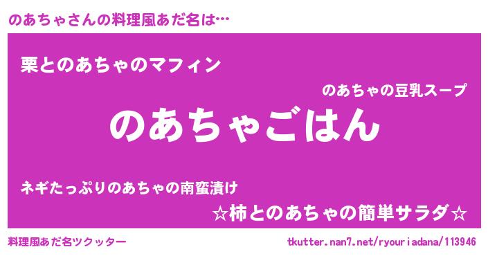 | 男性向けラノベタイトル風あだ名 | 『転生したらのあちゃだった件』 |