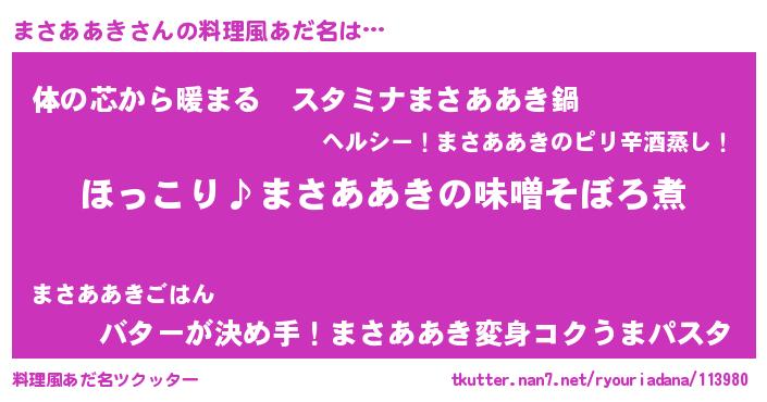 | 意味不明あだ名 | 『ペロリンまさああき』『自称まさああき』 |