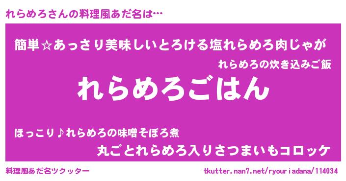 | ヘコむあだ名 | 『れらめろ(苦笑)』『れらにゅー』 |