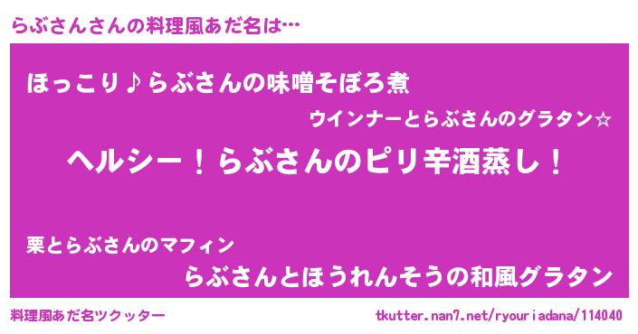 | ヘコむあだ名 | 『らぶもー』『つくし』『らぶぷりん』 |