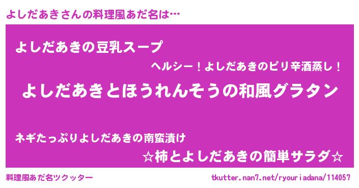 | 意味不明あだ名 | 『つくし科よしだあき属』 |