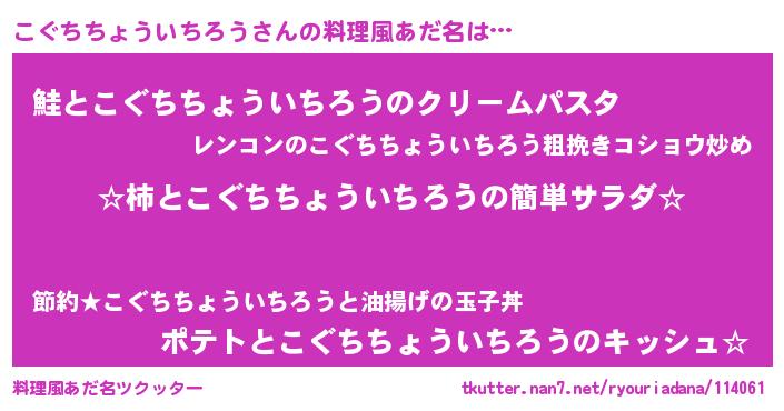 | 男性向けラノベタイトル風あだ名 | 『緋弾のコグチチョウイチロウ』 |
