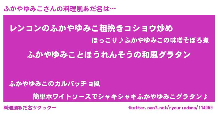 | 可愛いあだ名 | 『ふかぷりん』『ふかうちぇる』 |