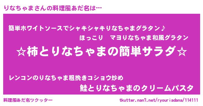 | 意味不明あだ名 | 『とにかく怪しいりなちゃま』 |