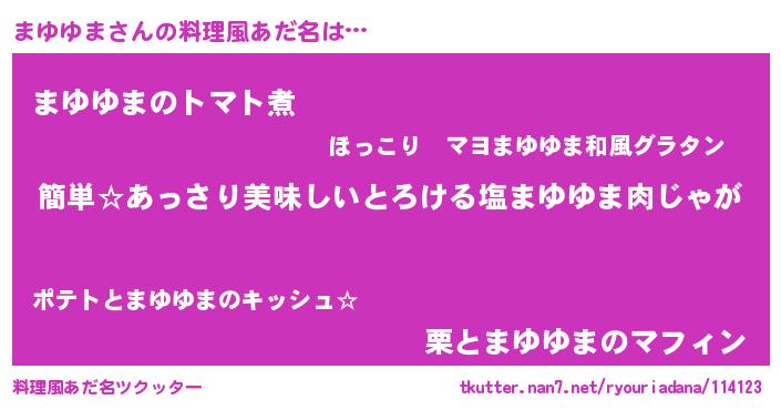 | ヘコむあだ名 | 『まゆゆま(遠い目)』『まゆお』 |