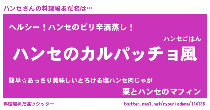 | ヘコむあだ名 | 『ハンセ(爆)』『ハンふぇ~』『豆乳』 |