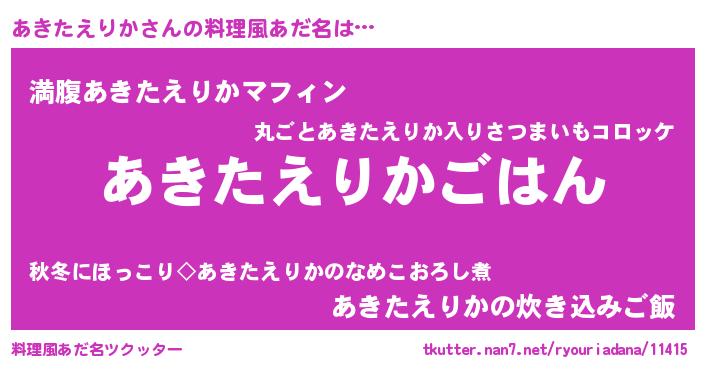 | ヘコむあだ名 | 『あきたえりか(笑)』『あきを』 |