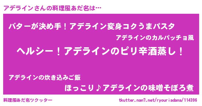 | ヒーロー風カッコイイあだ名 | 『最強戦士アデライン』『仮面アデダー』 |