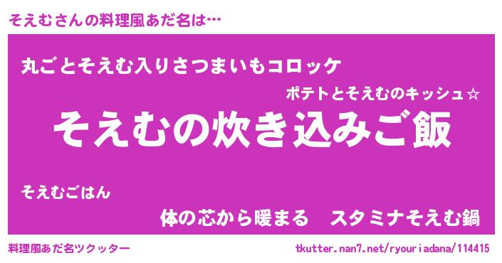 | ヒーロー風カッコイイあだ名 | 『仮面ソエダー』『ウルトラそえむマン』 |