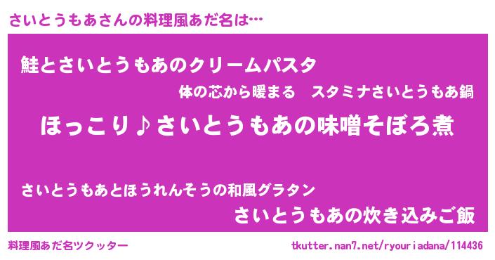 | 恥ずかしいあだ名 | 『プリティーさいとうもあ』『さいっちょ』 |