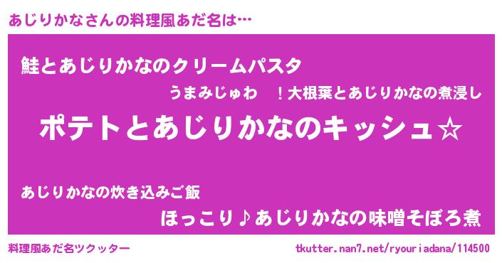 | ヒーロー風カッコイイあだ名 | 『銀牙騎士アジ』『正義の使者あじりかな』 |