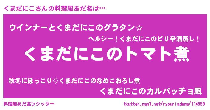 | 男性向けラノベタイトル風あだ名 | 『おまえをオタクにしてやるから、俺をくまだにこにしてくれ! 』 |