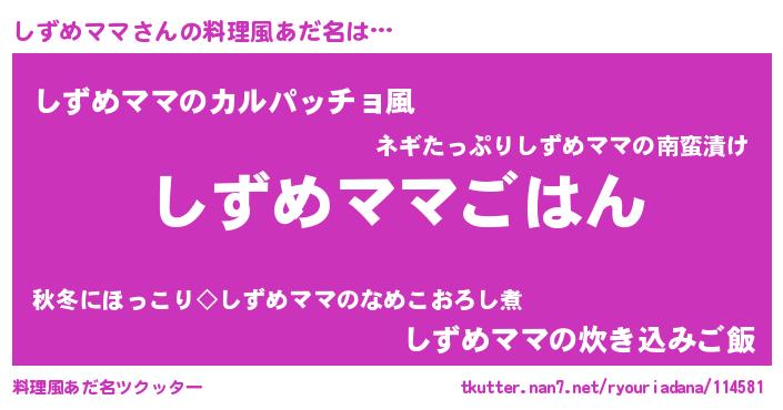 | ヒーロー風カッコイイあだ名 | 『仮面シズダー』『スーパーシズメママ』 |