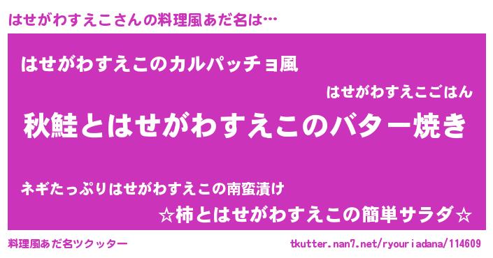 | 意味不明あだ名 | 『永久保存はせがわすえこ』 |