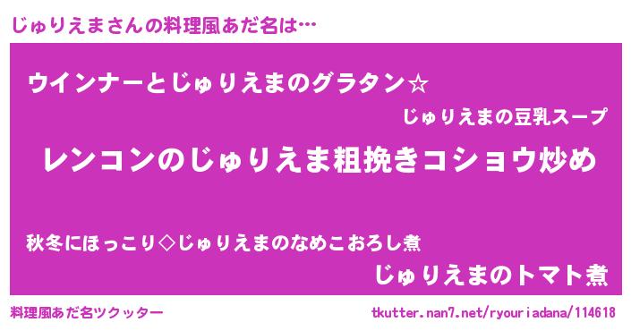 | 意味不明あだ名 | 『自称じゅりえま』『ペロリンじゅりえま』 |