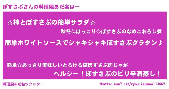 | ヘコむあだ名 | 『ぼすお』『ぼすさぶ(震え声)』 |